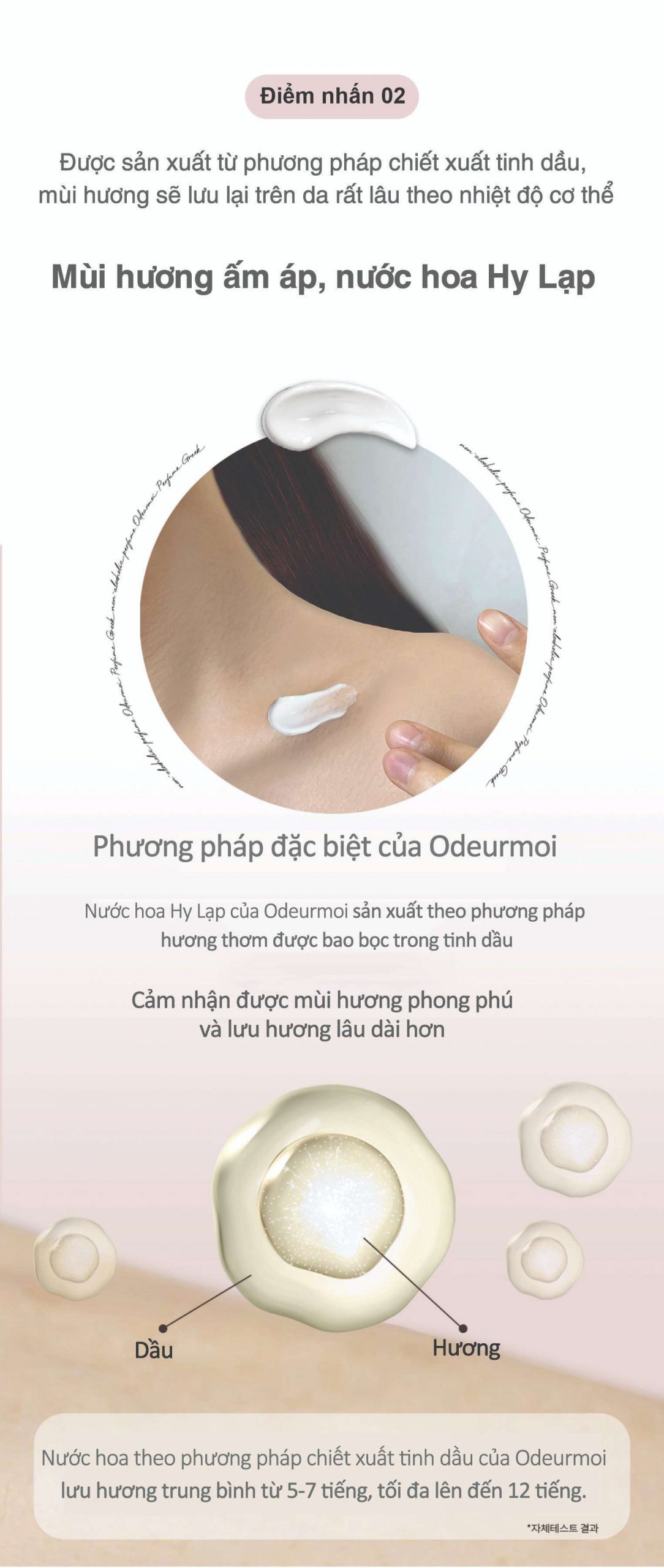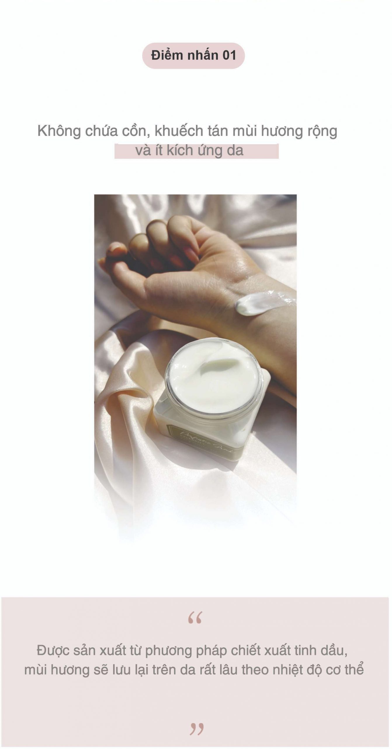 2. Được sản xuất bằng phương pháp chiết xuất tinh dầu, mùi hương được lưu trên da rất lâu dựa vào thân nhiệt.