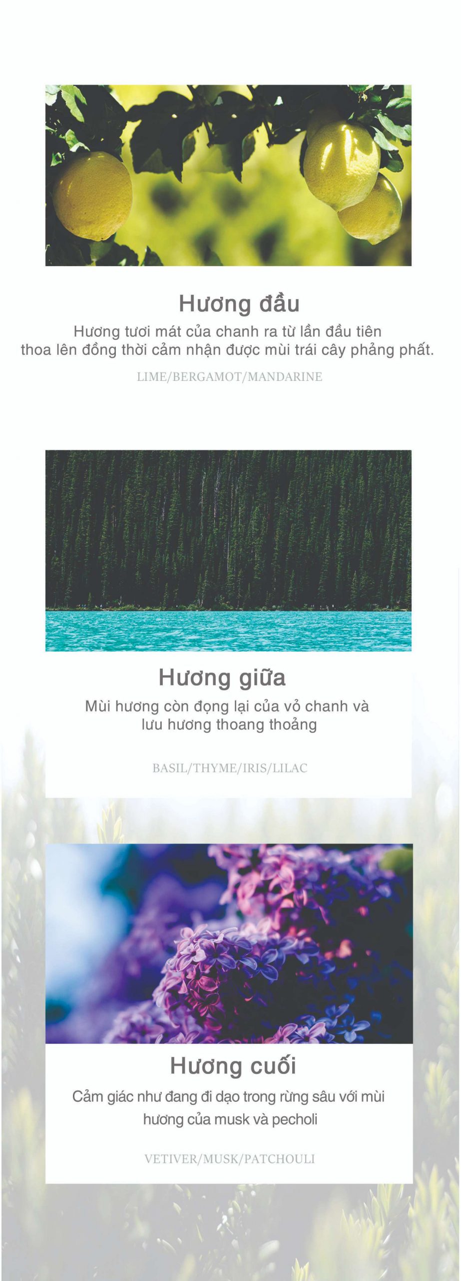 HƯƠNG ĐẦU: chanh, cam bergamot, mandarine