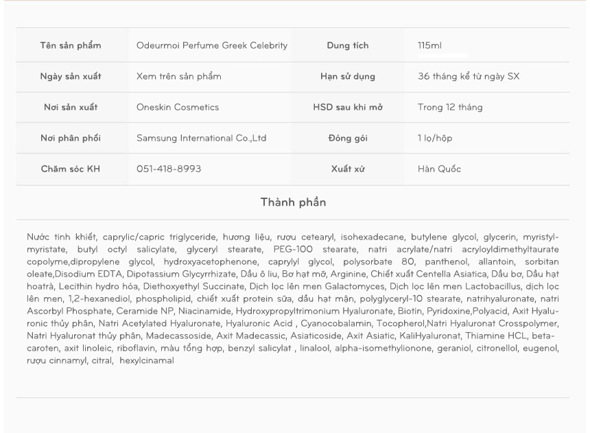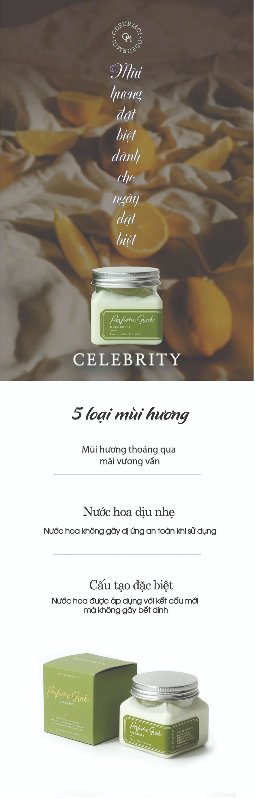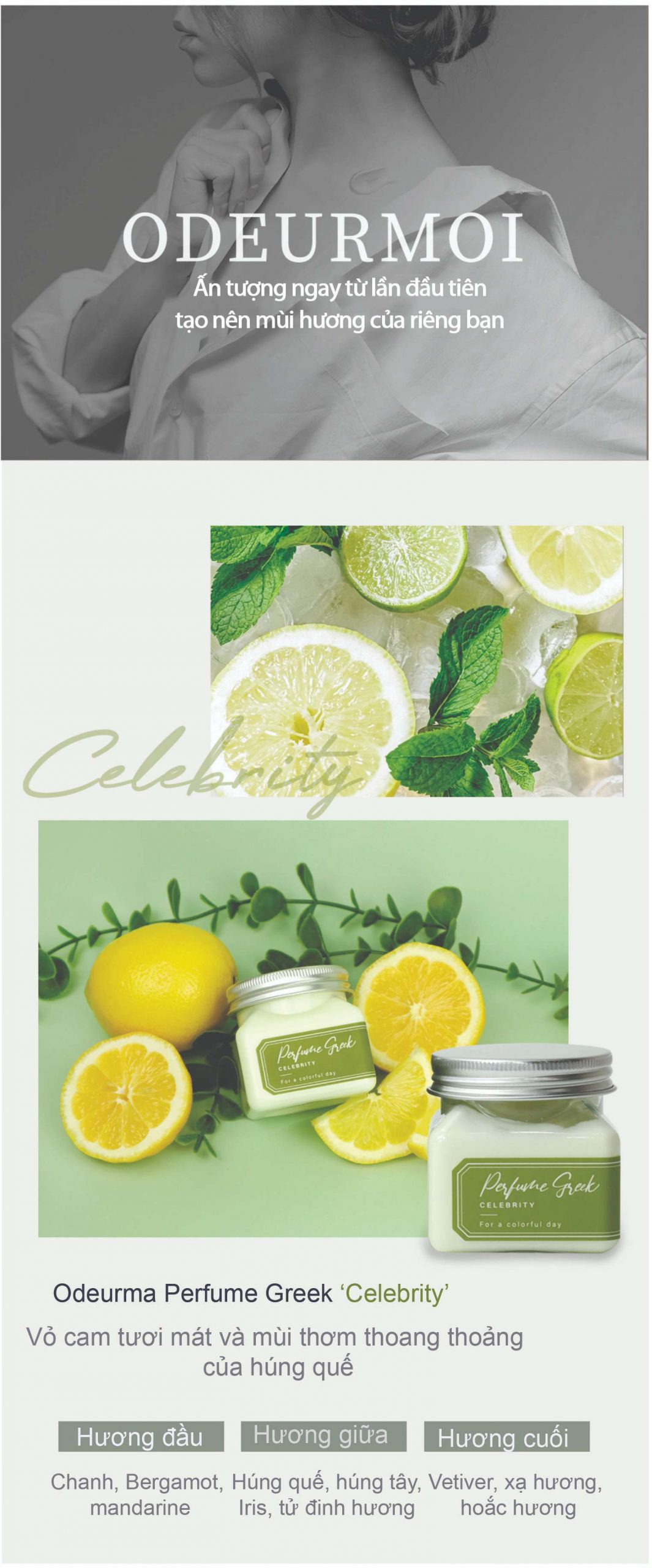 KEM NƯỚC HOA HƯƠNG CHANH ODEURMOI PERFUME GREEK CELEBRITY