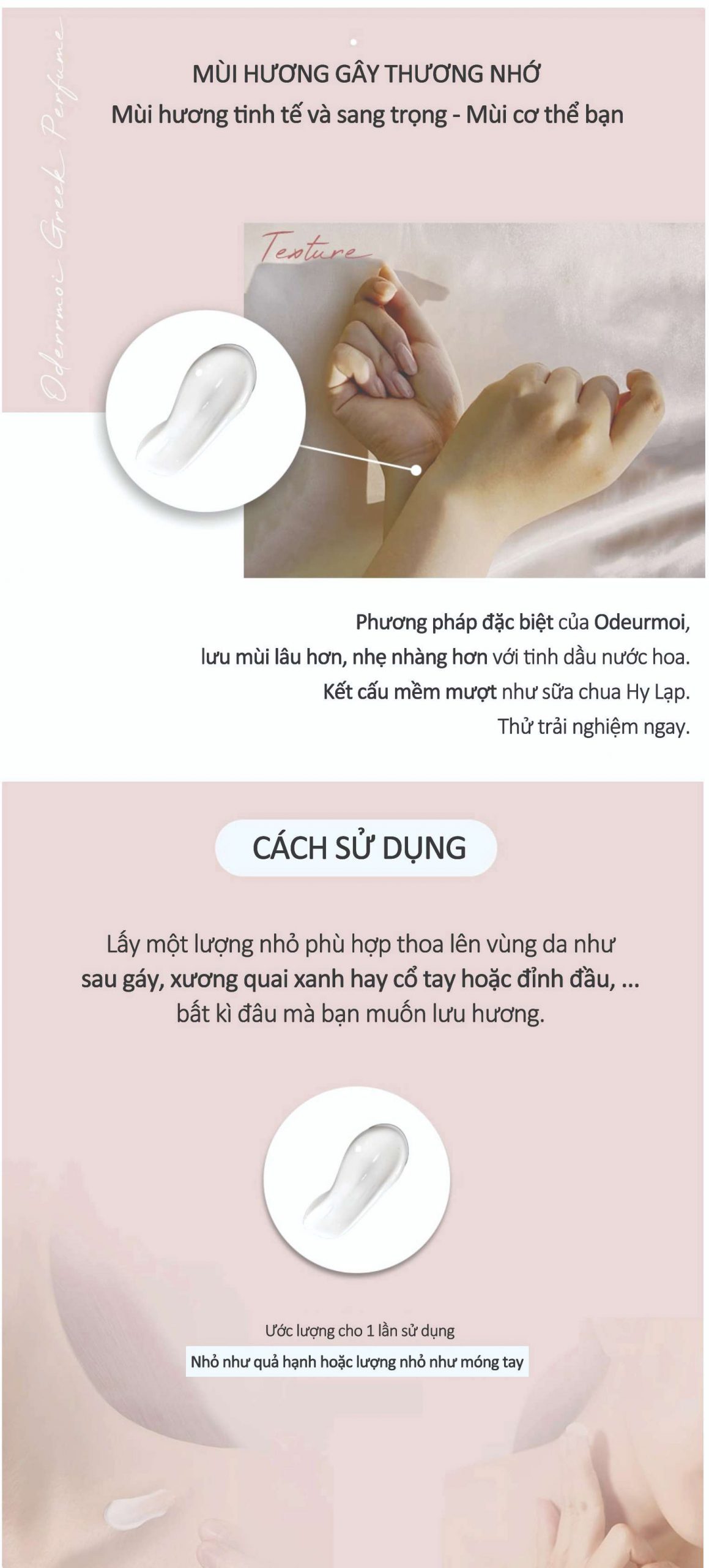 Cách sử dụng: Lấy một lượng nhỏ vừa đủ thoa lên bất kỳ vùng da nào bạn cần sử dụng như sau gáy, xương quai xanh, cổ tay hoặc đỉnh đầu.