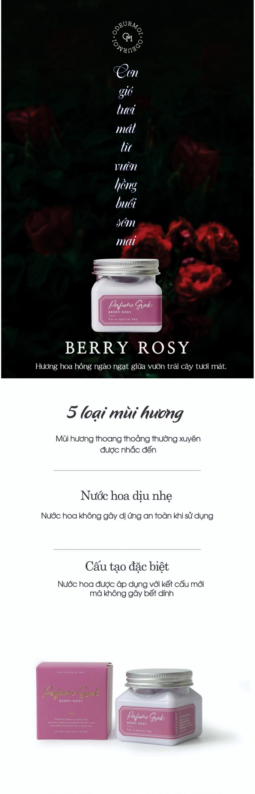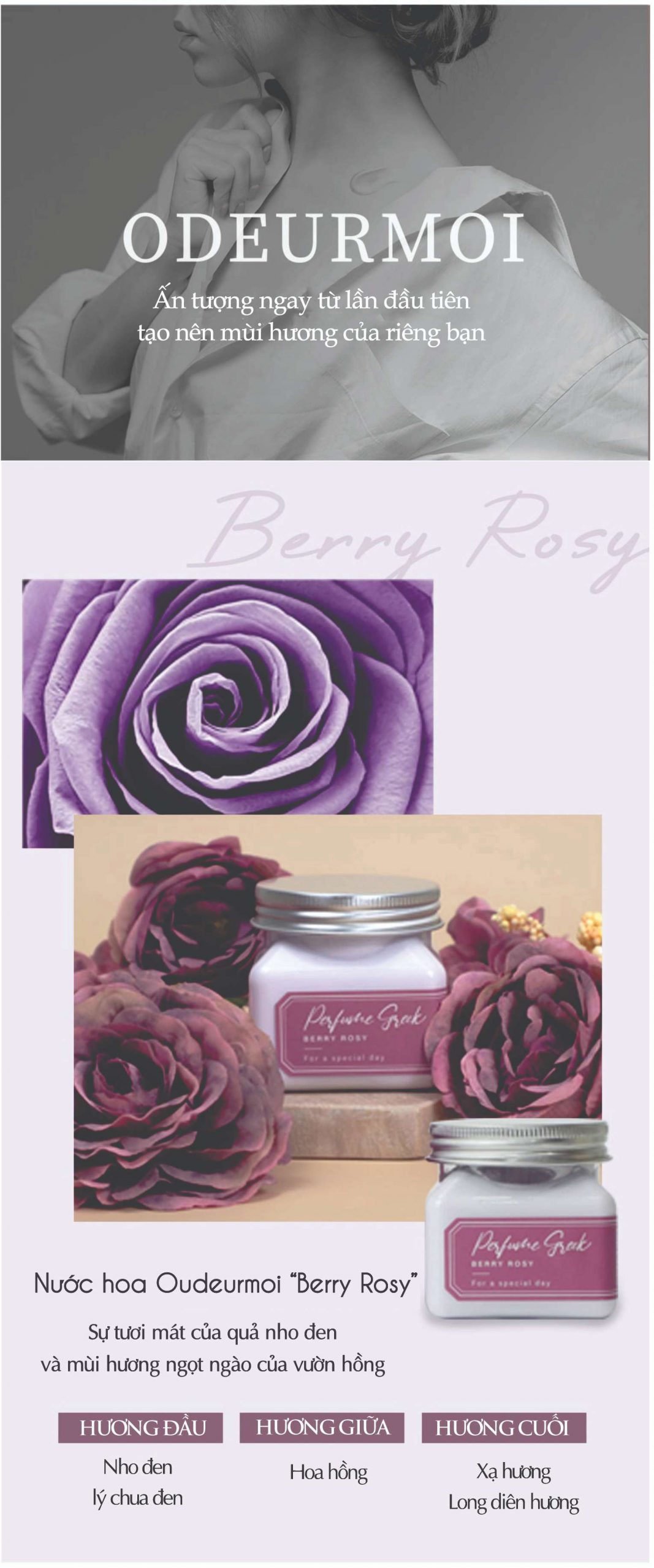 Sự tươi mát của quả nho đen và mùi hương ngọt ngào của vườn hồng